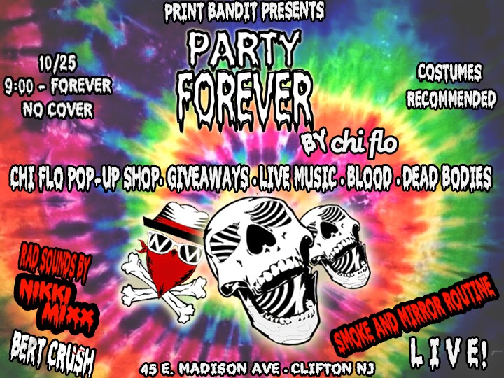 So, Party Forever was emerging into not only a Chi Flo pop-up shop (a physical space to sell Chi Flo at for a limited time), but a Halloween Party in which other talented people can be part of (bands, DJs, other artists attending).